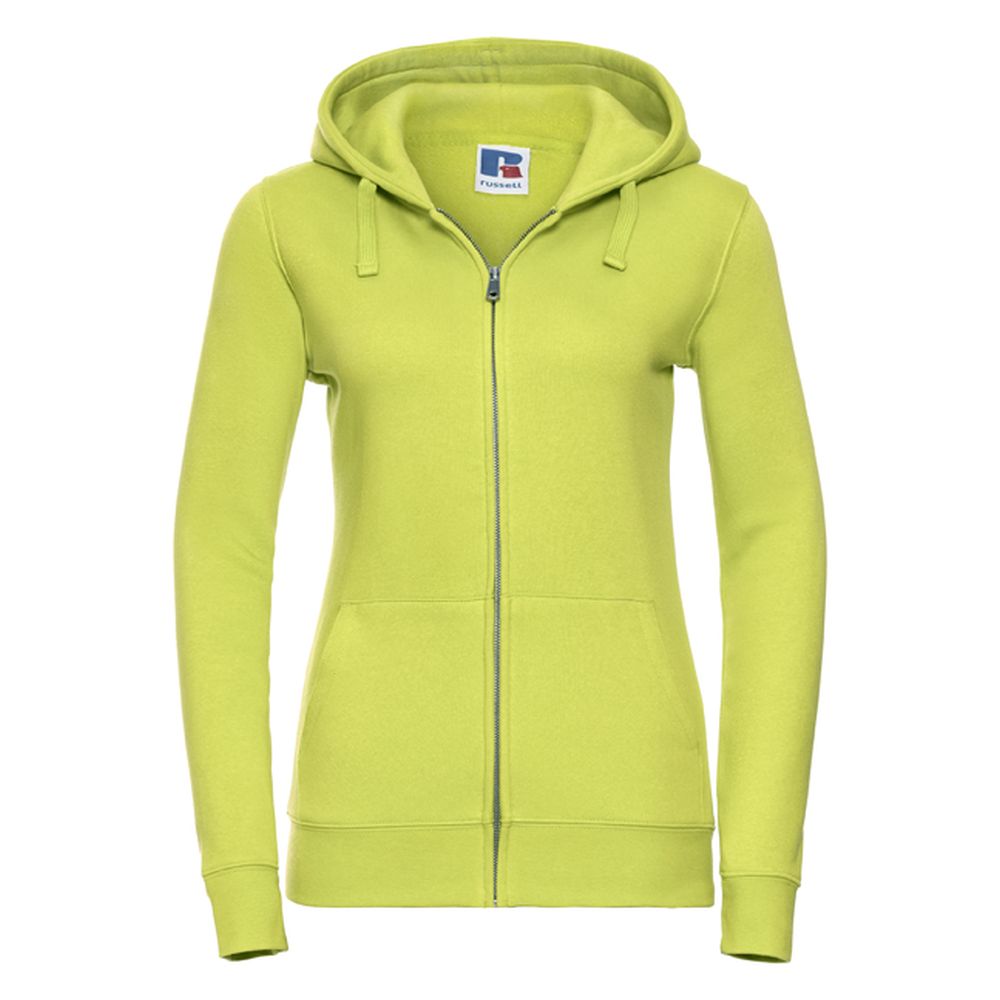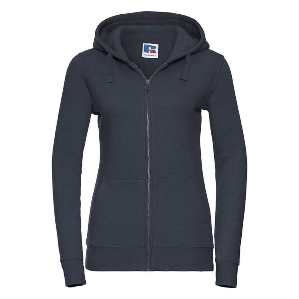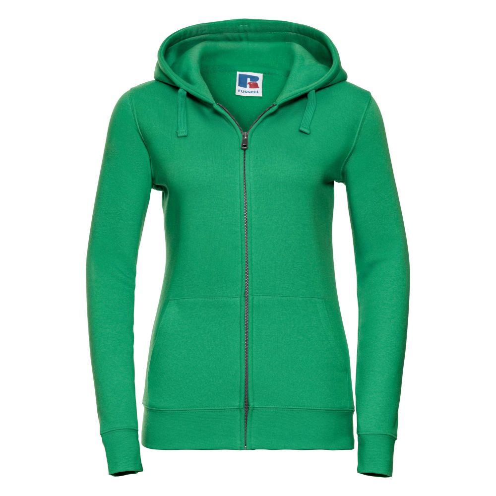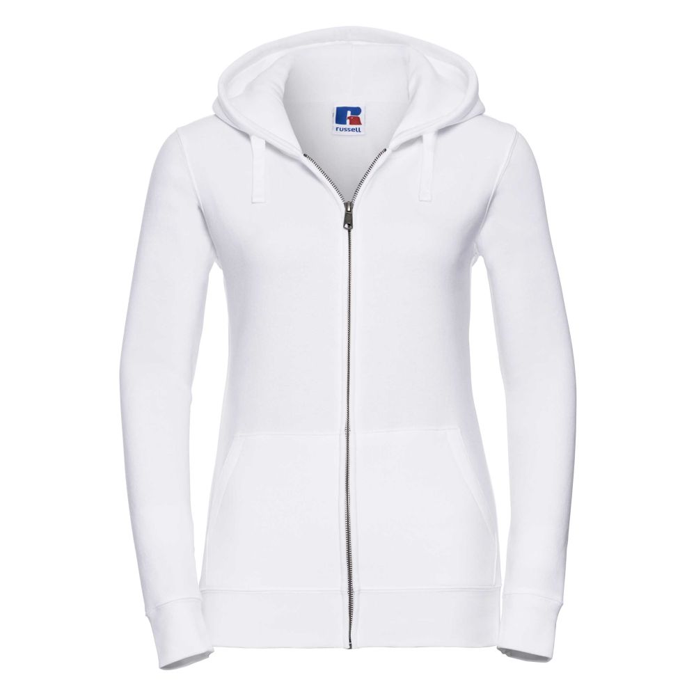 80 % gekämmte ringgesponnene Baumwolle, 20 % Polyester, Außenmaterial 100 % Baumwolle (3-lagiger Sweatshirt-Stoff), zeitgemäß feminine Passform, schlankere Schulterpartie und Ärmel, nach vorn versetzte Schulternaht, Nackenband in Fischgrätoptik für Stabilität und besonderen Tragekomfort, Saum und Bündchen weiter geschnitten und mit Elasthan, Decknähte an Armausschnitten, Bündchen und Saum, modisch flaches Zugband mit Knopflochösen, gefütterte Kapuze mit Zugband-Führung, Kopfhörer-Kabelführung, verdeckter messingfarbener YKK-Reißverschluss, Kängurutasche