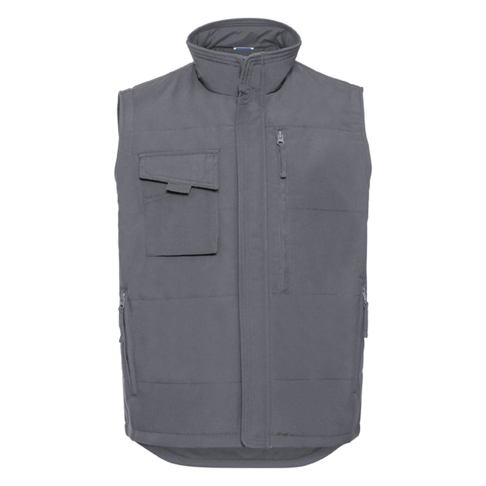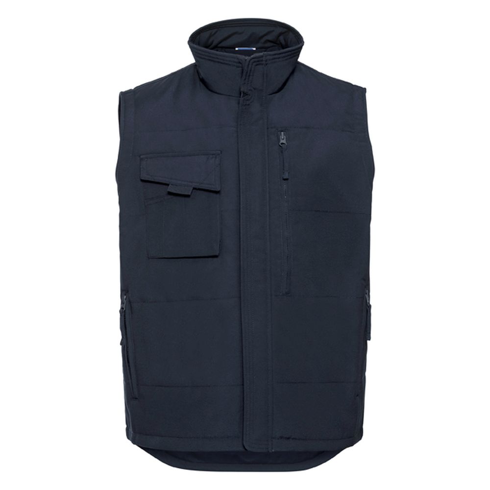 65 % Polyester, 35 % robuster Baumwollcanvas mit 150 g Polyesterwattierung, 100 % Polyester-Innenfutter, Teflon®-Faserschutzbeschichtung, widerstandsfähiges Material, unverzichtbar für raue Arbeitsbedingungen, vielseitige Taschen, verdeckte, vertikale Reißverschlussvordertaschen und große, rechtsseitige Innentasche für Dokumente im DIN A4-Format, Brusttasche rechts mit praktischen Unterteilungen, durchgehender Reißverschluss mit Regenblende, elastische Krageneinkerbung, verlängertes Rückenteil, elastischer Einsatz am Armausschnitt, verstärkter Aufhänger, gepolstertes Innenfutter, großzügiger Zugang für Druck- und Stickarbeiten über Reißverschluss auf linker Brustseite