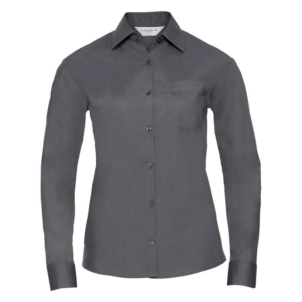 65 % Polyester, 35 % Baumwoll-Popeline; sehr vielseitiger Blusenstoff, welcher Haltbarkeit und Pflegeleichtigkeit vereint; die perfekte Wahl, wenn es z.B. um Team- und Messeausstattungen geht; klassischer Kragen, abgerundeter Saum; abgerundete, mit 2 Knöpfen verstellbare Manschette; Brusttasche links, farblich passende Knöpfe inkl. Ersatzknopf, pflegeleicht (easy care)