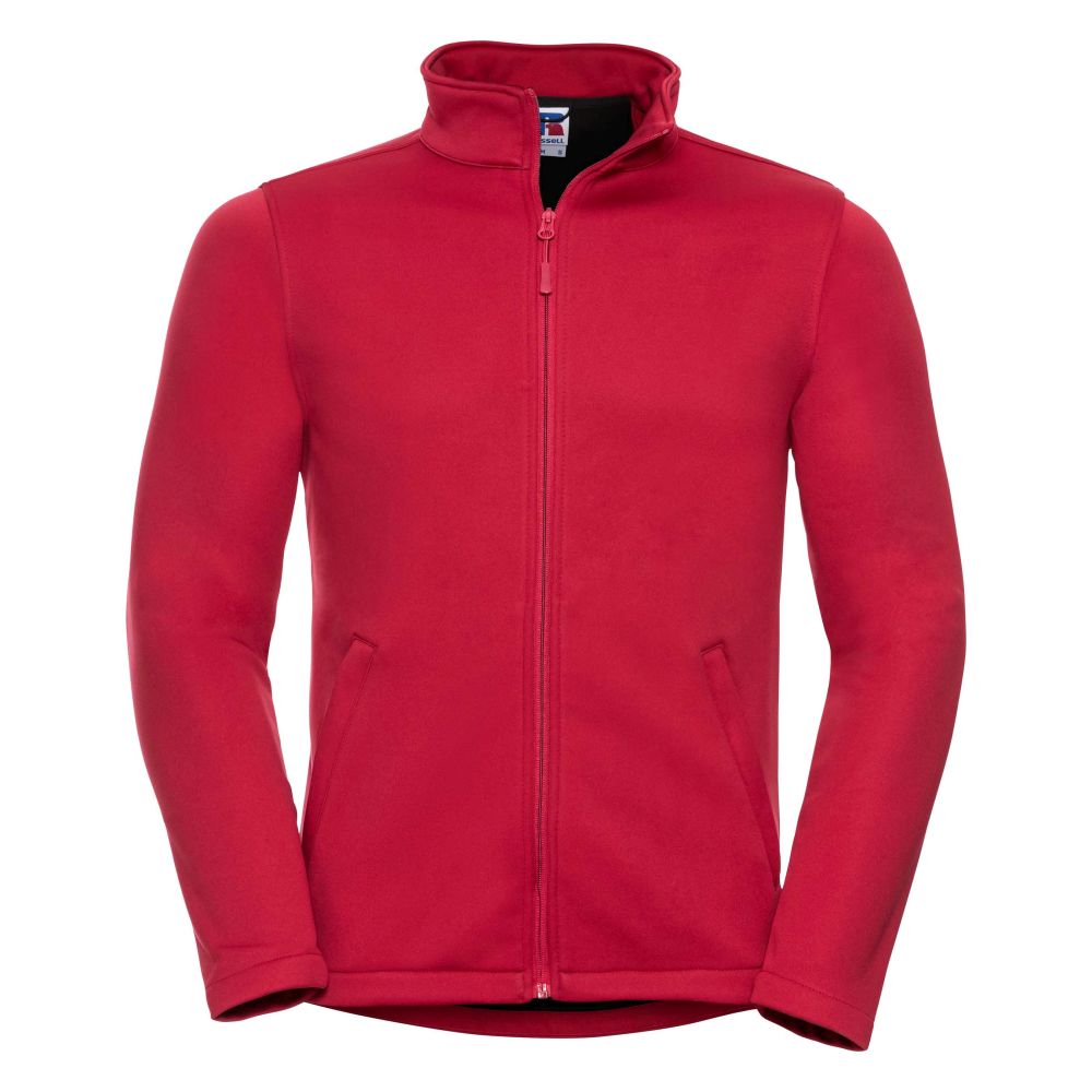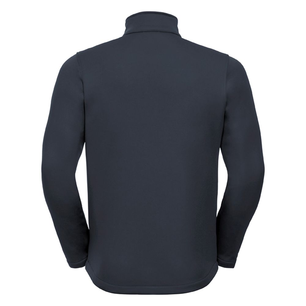 gestricktes Softshell aus 100 % Polyester mit verschweißtem Microfleece-Innenfutter, wasserabweisende DuPont™ Teflon® DWR-Beschichtung, 2-lagig -ohne Membran- für ein höheres Maß an Atmungsaktivität, Schutz gegen Wind und Kälte, 2 Reißverschlusstaschen, auf links eingenäthe Reißverschlüsse für ein feines Finish, Kadettkragen, verlängertes Rückenteil, Nackenband, eingefasste Innennähte am Reißverschluss, Kopfhörer-Kabelführung