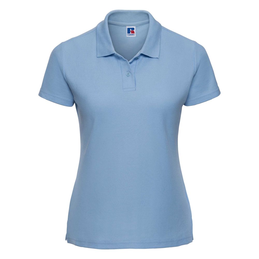65 % Polyester, 35 % ringgesponnenes Baumwoll-Piqué, feiner Piqué mit Wabenstruktur, offene Ärmel mit Doppelnaht am Saum, verstärkte Schulternähte mit Nackenband, klassische Passform in tailliert femininem Schnitt, Doppelnaht im unteren Saum für höhere Stabilität, Doppelgarnausführung, 2er Knopfleiste Ton-in-Ton, Ersatzknopf in der Seitennaht