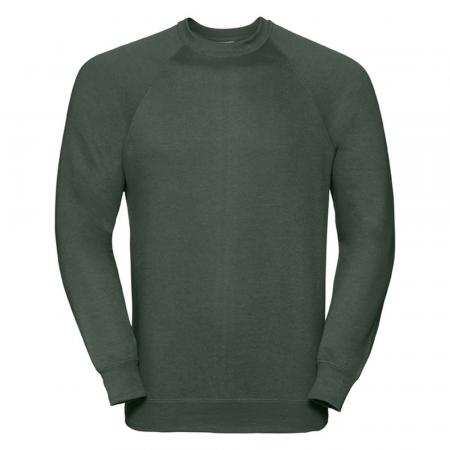 50 % gekämmte, ringgesponnene Baumwolle, 50 % Polyester, SpotShieldTM Fleckenschutz, Schlauchwarenausführung für zusätzliche Stabilität, Nackenband in Fischgrätoptik für Tragekomfort, Raglan-Ärmel, einfach geripptes Bündchen mit Elasthan an der Einfassung und an den Ärmelbündchen