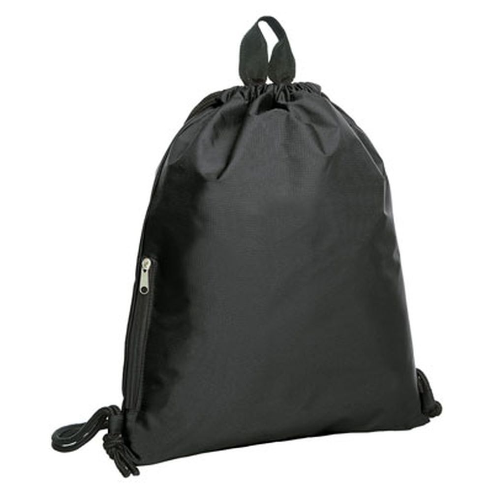 Polyester Mini Ripstop, großer Zugbeutel-Rucksack, Hauptfach mit seitlicher Reißverschluss-Tasche, Kordelzug, Trageschlaufe